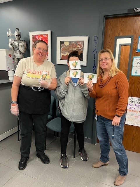 The Dardenne Team kicked off the day with The Great Turkey Hunt. Staff arrived this morning and found pictures of turkeys in their mailboxes. They had all day to find two other staff members who had the same picture of the turkey. Once they found their team, they had to find the turkey in the office with the code word and text a selfie to Dr. Allen. The laughter and smiles were contagious. It was a great way to wrap up the week and start Thanksgiving Break!