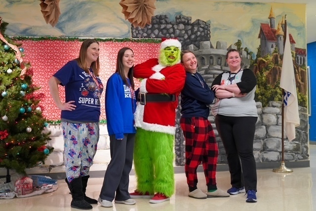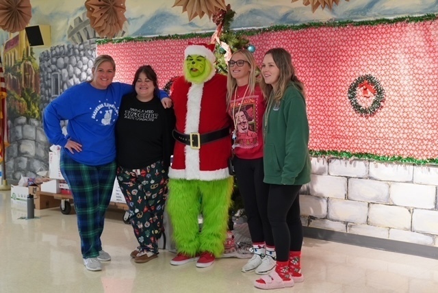 Students got an extra surprise today when they walked down to the cafeteria. The Grinch stopped by for a visit!